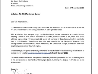 WAF President Assen Hadjitodorov and General Secretary received the official invitation from Sir. Philip Craven, President of the International Paralympic Committee (IPC) as guests to the Paralympic games.